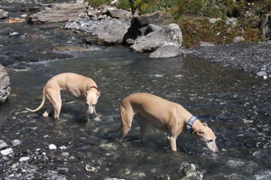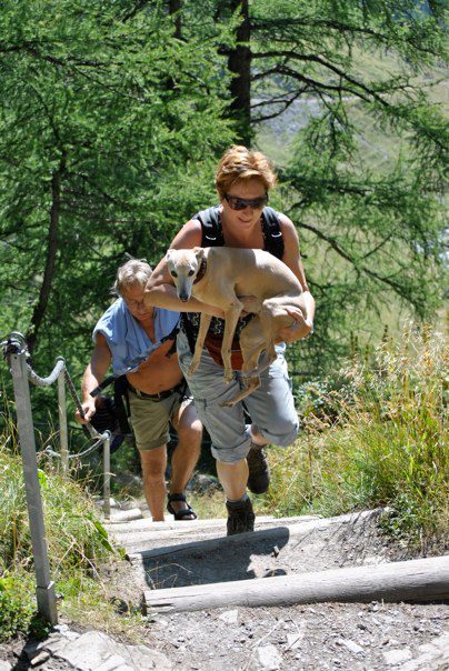 Mozart deed het dit jaar ook weer fantastisch in de bergen. Ondertussen is het alweer twee jaar geleden dat hij verlamd raakte door een hernia en moest worden geopereerd om te overleven. Hans en Elly, wat ziet hij er toch altijd dapper en happy uit. Hij showt hier zijn ballonnen met babysokjes, ideaal schoeisel voor whippetvoeten die niet dagelijks op het harde hete steen in de Alpen lopen.