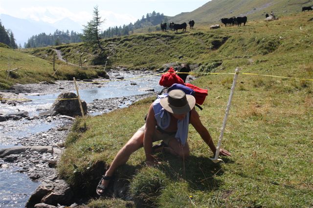Zo’n wandeling langs riviertjes geeft als voordeel dat je niet met water en waterbakjes hoeft te slepen.