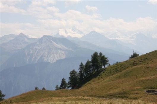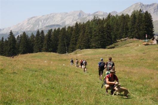 Wat zijn Alpen zonder koeien….. deze zwarte meiden waren totaal niet onder de indruk van ons of onze honden. Andersom wel; Hinde hield ruim afstand van ze, met als gevolg dat ze het schrikdraad raakte. Dat deed z’n naam eer aan: ze wist niet wat haar overkwam en slaakte een schrille kreet ;>).