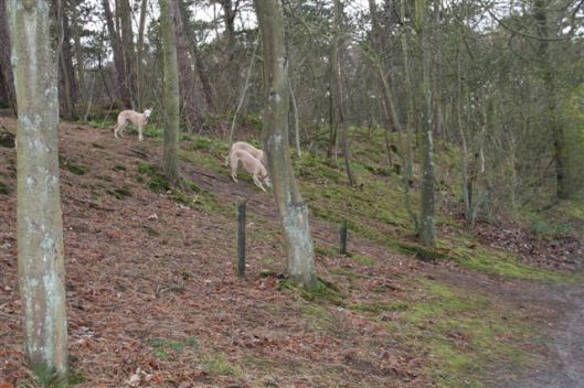 De dames waren gisteren behoorlijk jagerig en actief. In het bos, maar ook gisterenavond laat in het donker, achter een kat aan bij de dijk. We gaan Hinde voor de zekerheid maar aan de uitloopriem houden.