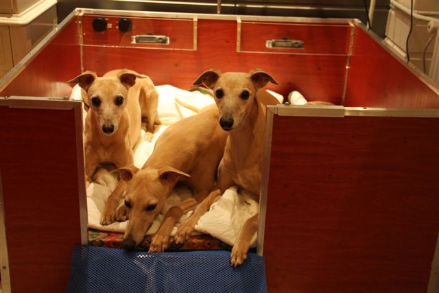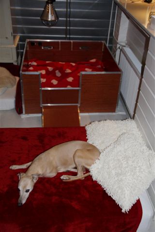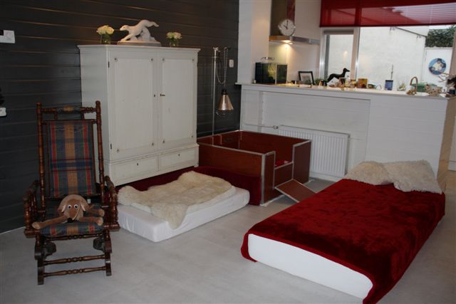 De kraamkamer is ook gereed, de werpkist staat sinds de kerst in een knusse hoek van de woonkamer, met matrassen ernaast voor mens en dier. Hier komen ook Elly en Nikki te liggen wanneer ze mij in de eerste weken een paar nachten aflossen: is het zo goedgekeurd, dames?