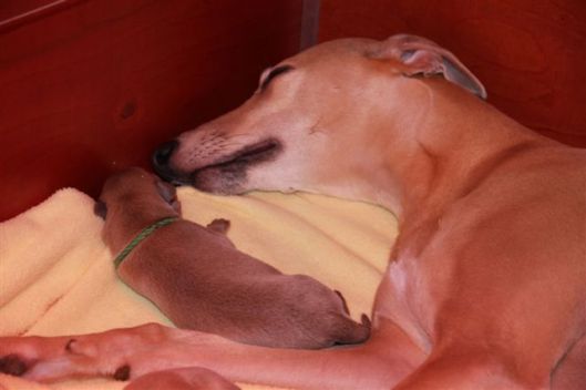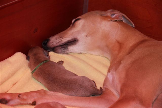 Met Hinde gaat het prima, ze is echt op haar gemak met haar kinders, eet goed en lijkt op een relaxte manier te genieten van de situatie. Morgen komen Chloe en Jewel weer thuis – we gaan eerst een puppyhek om de werpkist zetten, zodat zij nog even afstand kunnen houden van Hinde en de pups.