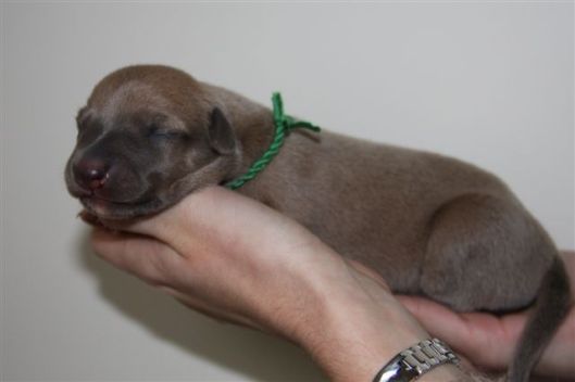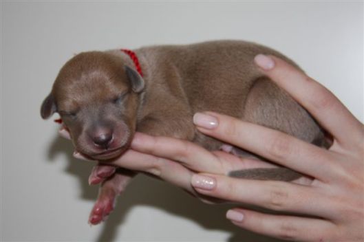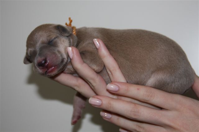 In het A-nest ben ik begonnen met het vernoemen van Hinde naar haar oma, die de roepnaam Chloe draagt: “Salty Sand’s Aubade for Chloe”. Logisch dat Hinde’s dochter nu wordt vernoemd naar haar oma Jewel. Het is een logica die ik zelf leuk vind, maar die bij de dierenarts nog wel eens verwarring oplevert bij het invullen van officiële documenten. Geeft niets, het is een kwestie van goed wakker blijven! Haar roepnaam wordt Hazel, als verwijzing naar haar kleur.