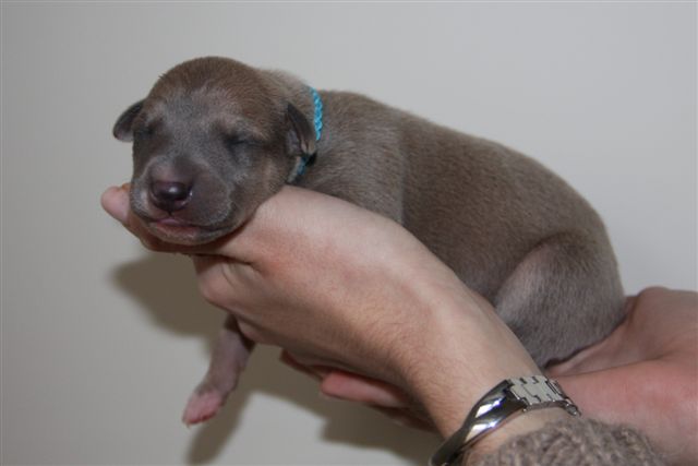 Bring Me Luck is een naam met een B die tot mijn verbazing totaal niet voorkomt in The Whippet Archives, terwijl daar toch bijna 132.000 whippetstambomen in staan, van whippets die in de afgelopen 120 jaar zijn gefokt. Dit meisje zal de eerste zijn, en ik hoop dat zij haar nieuwe eigenaren het whippetgeluk brengt waar zij al geruime tijd naar toe leven. Haar roepnaam wordt Megan, wat heel toepasselijk is bij de kennelnaam, want het betekent: “parel van de zee”.