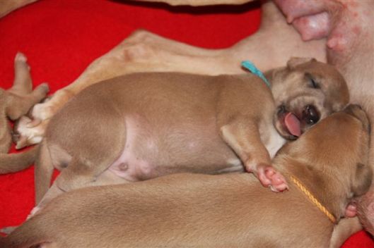 Mijnheer de Vos werd direct na zijn eerste piepje geclaimd en mee naar de bank gesleurd. Vier bloedjes van pups bleven daardoor onbeheerd achter in de werpkist, met honger ….