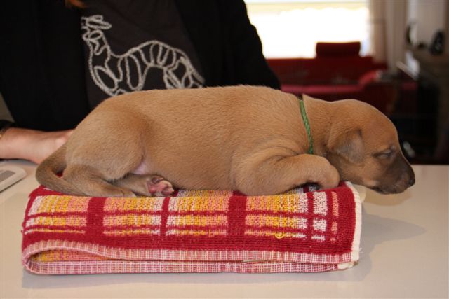 De pups gingen ook nog op de weegschaal, zodat we wisten welke dosering ontwormingsmiddel ze ’s avonds nodig hadden ….
