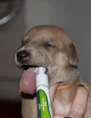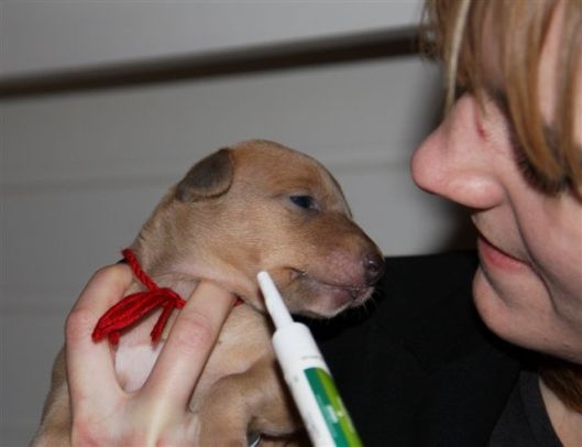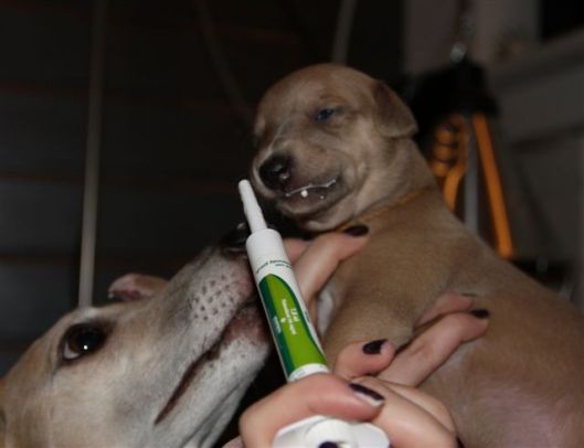 De pups werden vanavond “live” voor de webcam voor de tweede keer ontwormd, en vonden het niet echt lekker;