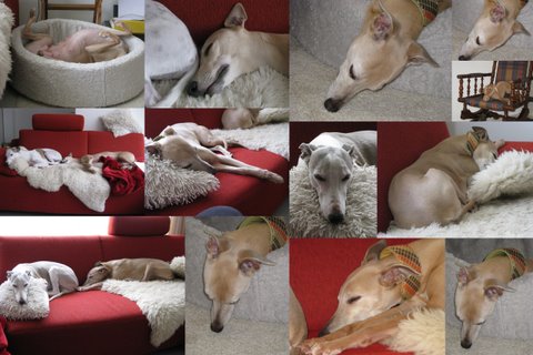 Marieke heeft zaterdag samen met haar whippets Lucky en Bora op mijn honden gepast toen ik naar Annemarie’s pups ging kijken. Dat is alweer de vierde generatie waar zij over waakt; ik ken Marieke sinds zij bij Wim regelmatig op Chloe en haar nestgenootjes paste, in het voorjaar van 2000. Nu, drie generaties later, zijn de kleintjes nog altijd in goede handen! Maar Marieke concludeert wel dat zij een slaapverwekkende invloed op de meute heeft, getuige de fotoserie die ze zaterdag heeft gemaakt. Geeft niets Marieke, duizend maal liever slaapverwekkend dan bijvoorbeeld bloednerveus ;>)