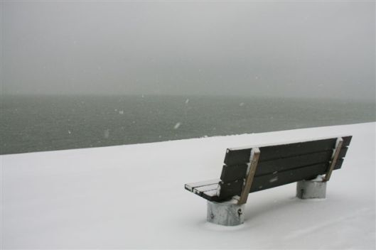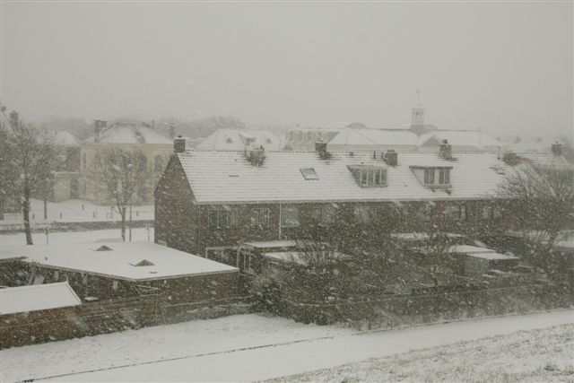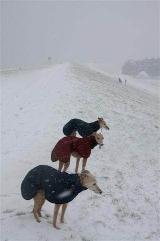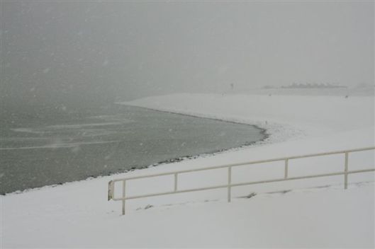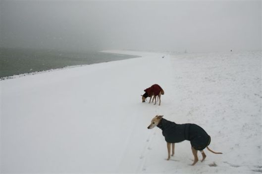 Vanmorgen de zeedijk op met de eerste sneeuwval;