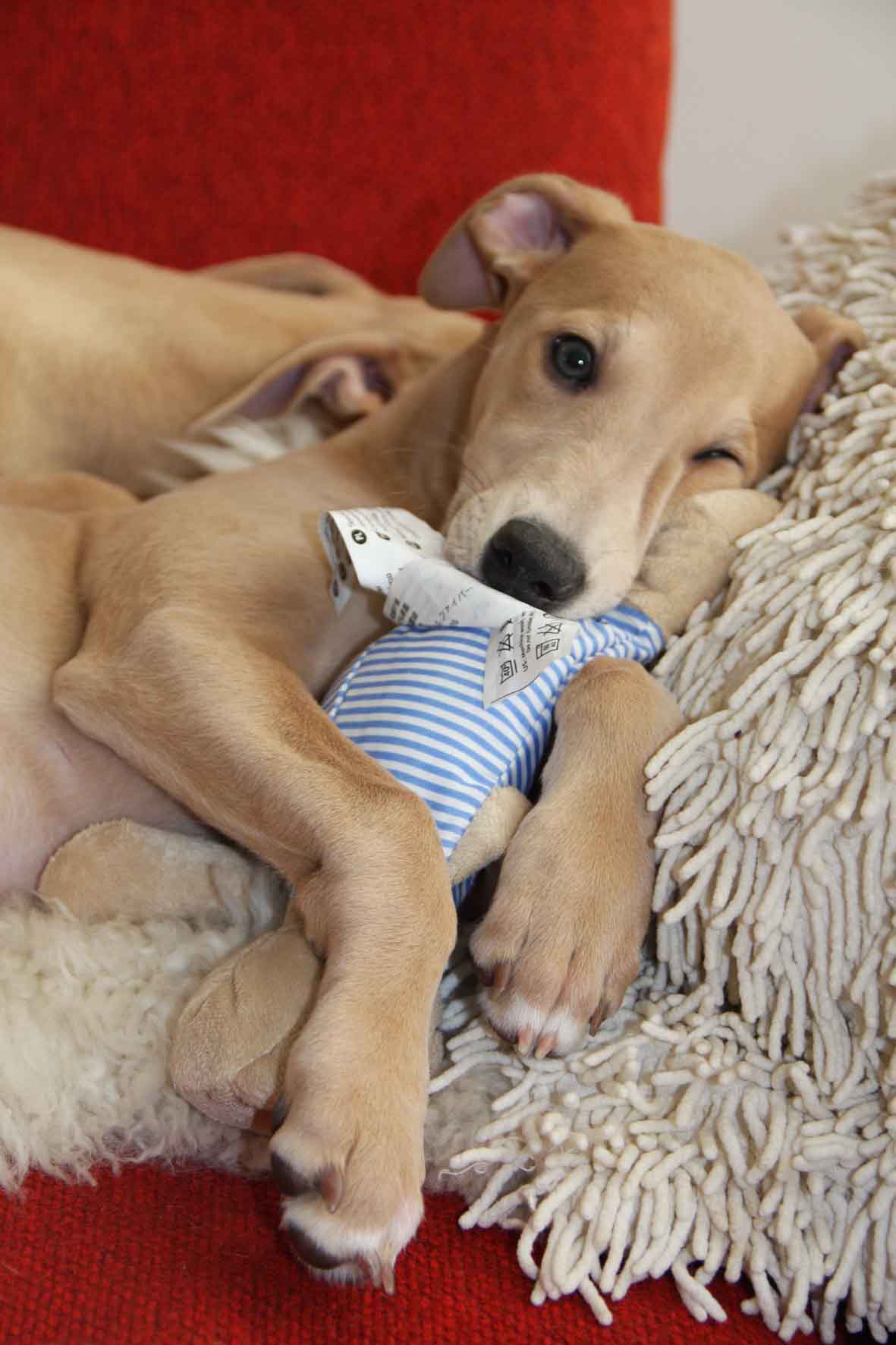 Met Hazel gaat het prima – zoals dat gaat bij puppen van 11 weken: de wereld is van hen, en de mensen- en hondenroedel zorgt ervoor dat er nooit een vuiltje aan de lucht is. Het leven bestaat uit zorgeloos genieten van eten en spelen, afgewisseld met slapen….