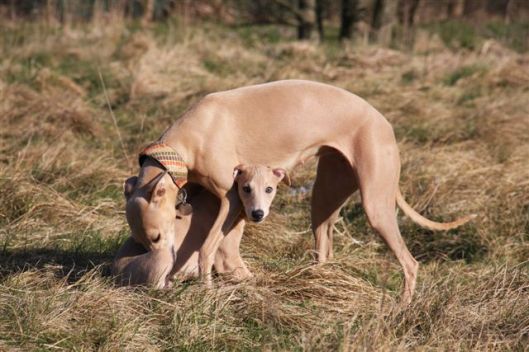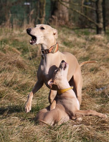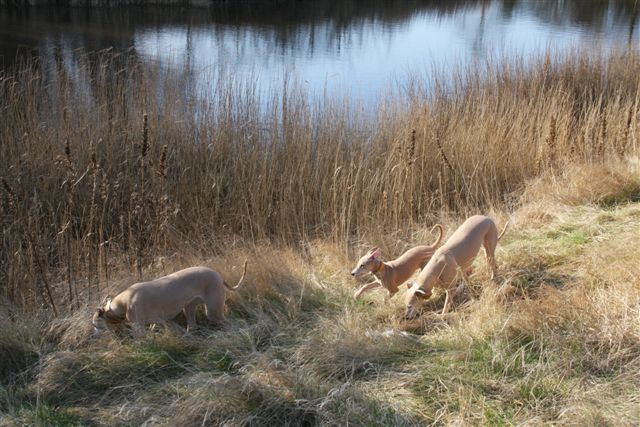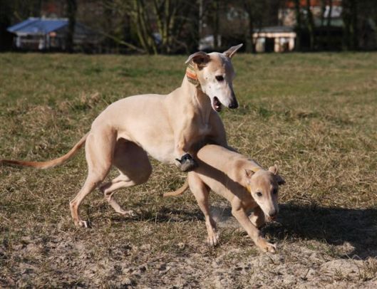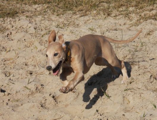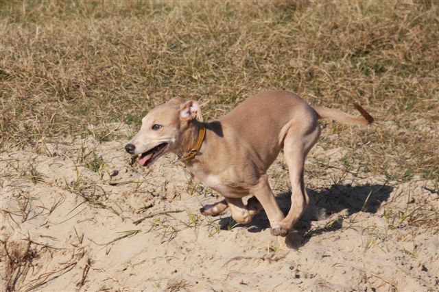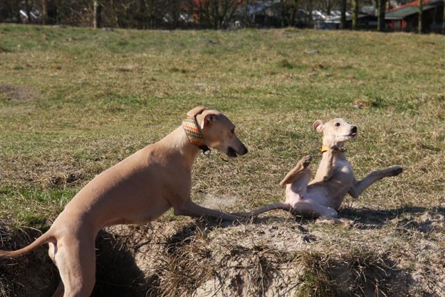In de natuur past ze zich moeiteloos aan aan de roedel. Op korte wandelingetjes mag ze mee met de roedel, en doordeweeks wordt ze apart uitgelaten door mijn moeder, die met de fluit en leverworst “kom voor” met haar oefent. Dat gaat al heel goed!