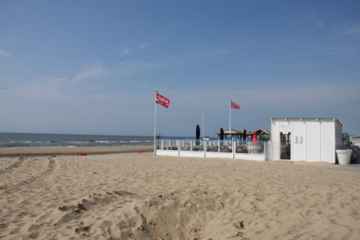 Het strand ligt echt op steenworp afstand, en is met de rolstoel goed bereikbaar. Leuke pavilioens waar je lekker kunt lunchen met bezoek.