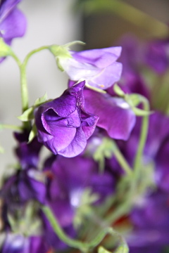 Close up van een vrolijk bosje lathyrus dat ik gisteren kreeg in een schattig vintage retro vaasje;