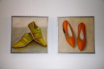 Overal in het hotel hangt kunst, tot op de kamers aan toe; zoals deze serie schoenen van kunstenares Inez.