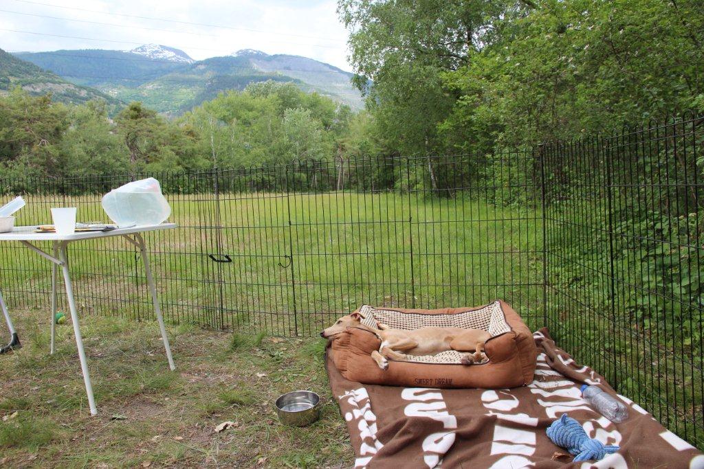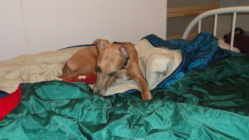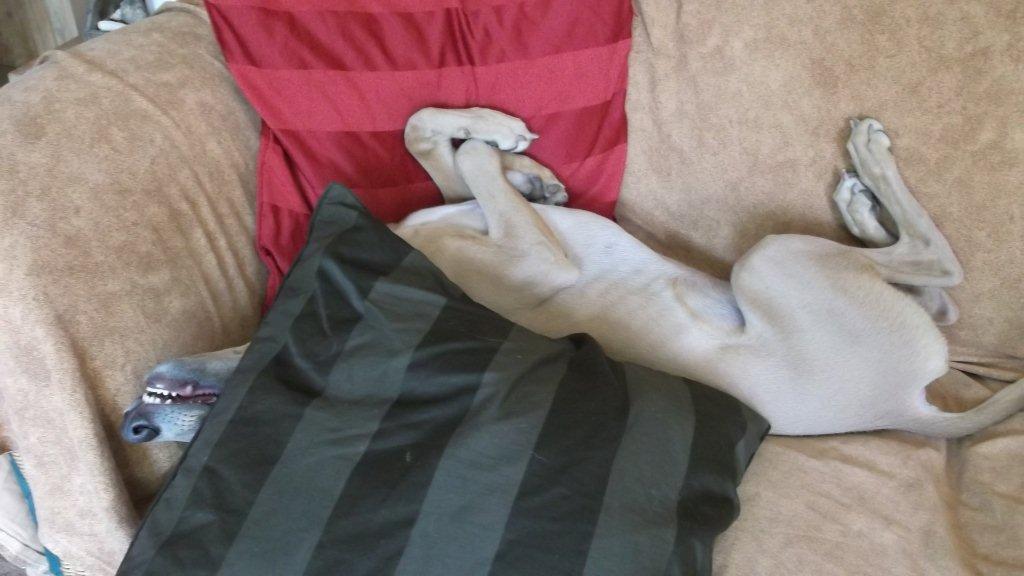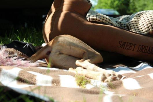 Deze foto werd enkele weken eerder gemaakt, vlak voordat ik werd geopereerd. Bidaï ligt rustig op de harde bestrating!