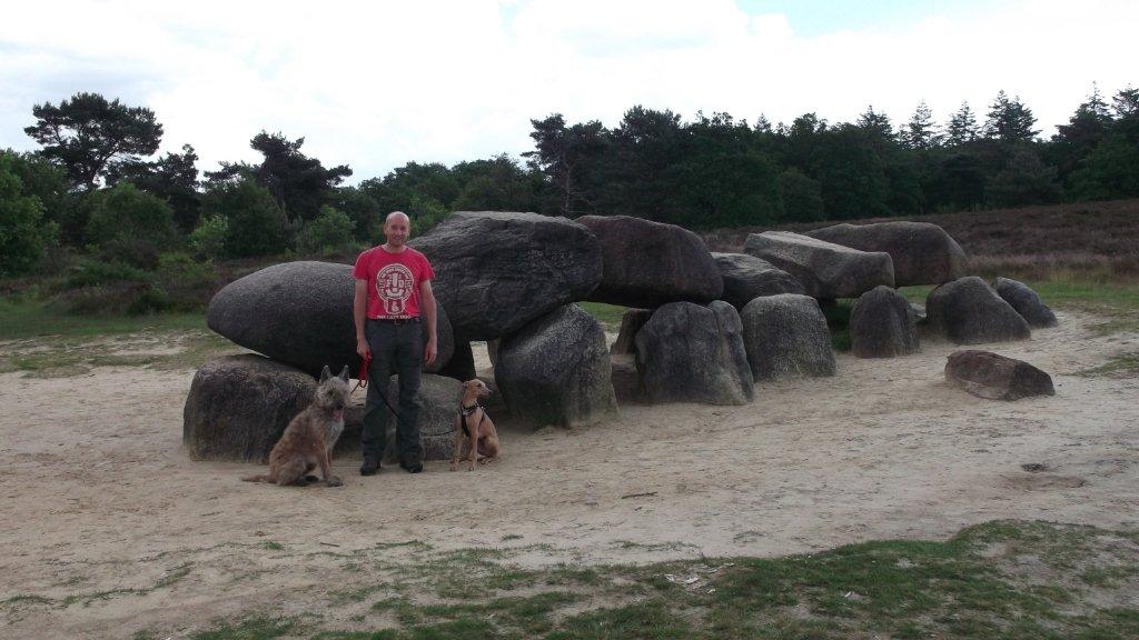 Samen met Olaf en Yuma poseren voor de hunebedden.