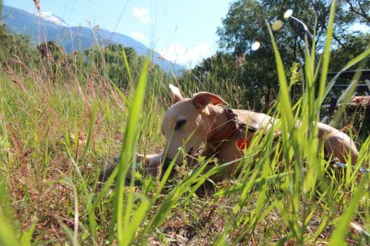 Megan, met op de achtergrond de bergen waar wij ook menige wandeling hebben gemaakt. Gek idee eigenlijk!
