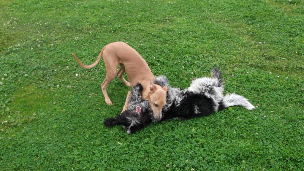 Spelen met leeftijdsgenootje Pippa de schapendoes.