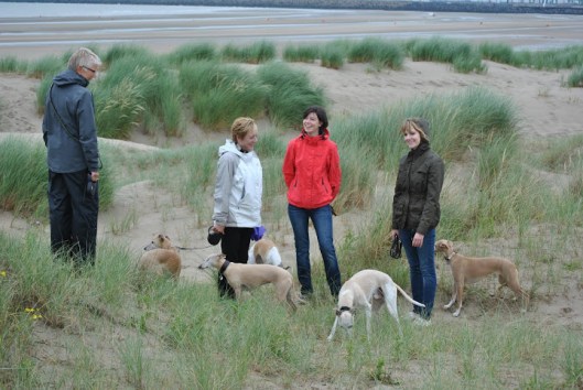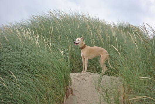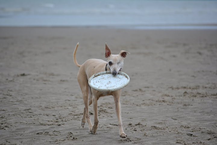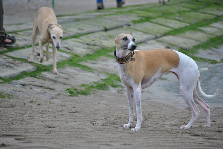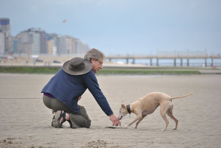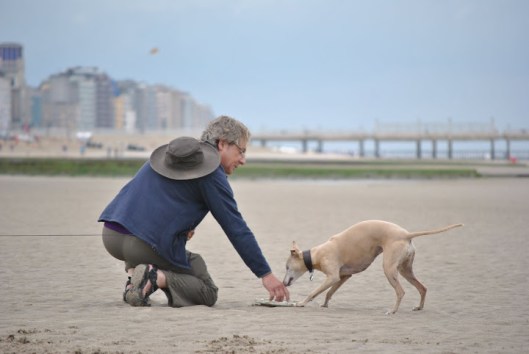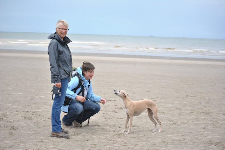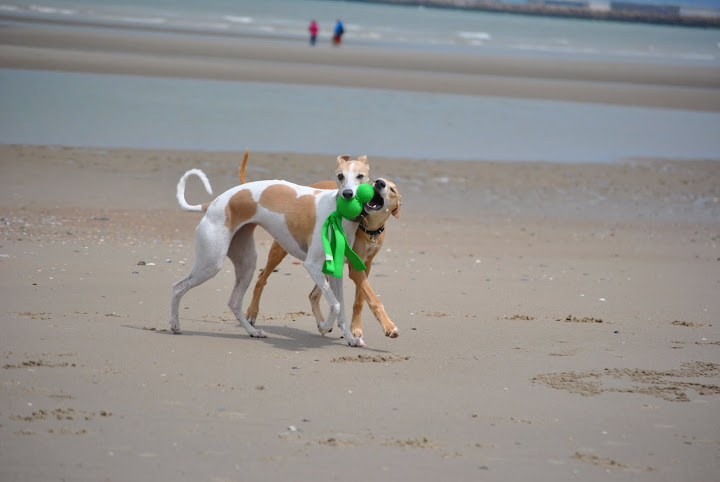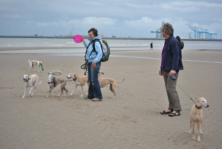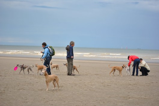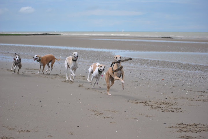 Op het strand voerden de Belgische whippets het hoogste woord; met stokken en frisbees.