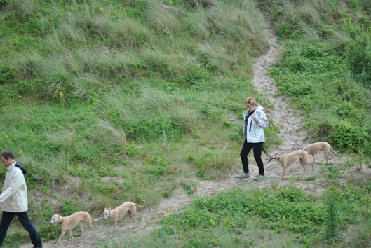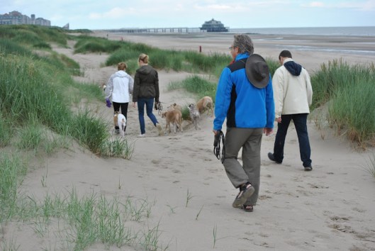 We liepen door de duinen richting Blankenberge (zie de pier in de verte) en over het strand terug naar Zeebrugge. Het is een smal en overzichtelijk duingebied, door een hek afgegrensd van de weg – de honden konden er veilig los lopen, maar er zit ook konijn, dus hebben we Hinde en haar broer Maestro nauwelijks nog gezien ;>))