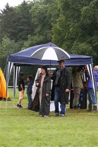 Virginie en Nikki sliepen in de twee tentjes die Virginie en wij mee hadden, en dezelfde tentjes dienden tijdens de shows als gezellig onderdak tegen de regen. Een heel bataljon van deze groene of grijze tentjes stond opgesteld langs de showring. Ze zijn ‘dan ook erg handig. Ze staan binnen een paar seconden en opbergen hoeft maar 5 minuten te duren als je weet hoe het gaat…. 89 euro bij Decathlon en voor 39 euro extra heb je er een grondzeil en binnentent bij.