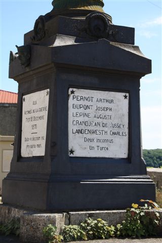 Op het kerkplein een gedenkteken voor de dorpsgenoten die zijn gevallen in de eerste wereldoorlog. Opmerkelijk: 5 mensen worden bij naam genoemd; dan nog 2 “onbekenden” en 1 “Turk”.