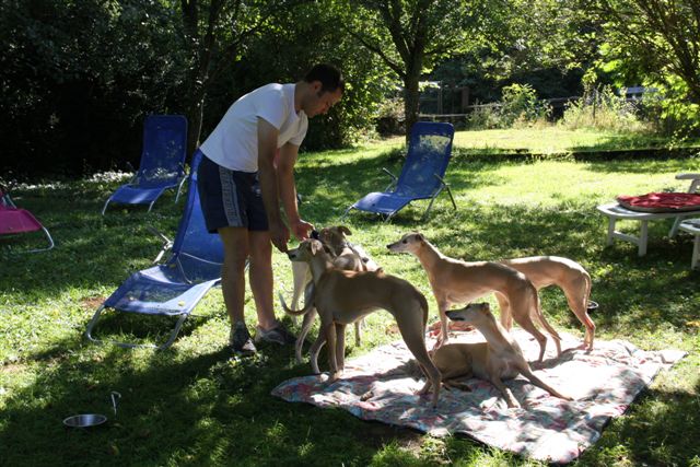 Een praatje met een visser aan de overkant van het kanaal…. natuurlijk ging het over “la meute de whippets”, die steeds de nodige aandacht kreeg van de Fransen.