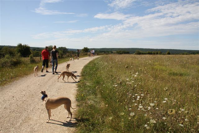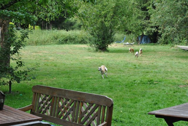 De hondjes zo mak als een lammetje in ons kielzog;