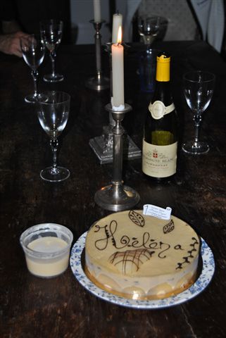 De prachtige perentaart die Evelien en Wim kochten als desert….. te serveren met custard erbij;