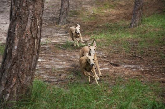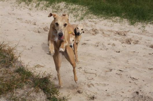 Woensdagavond ben ik nog met Hinde en Hazel naar coursingtraining geweest in Spaarnewoude; Hinde vond het weer geweldig en ook Hazel werd opgezweept door de felheid van haar moeder; ze liep voor het eerst, en in verband met haar leeftijd een half parcours.