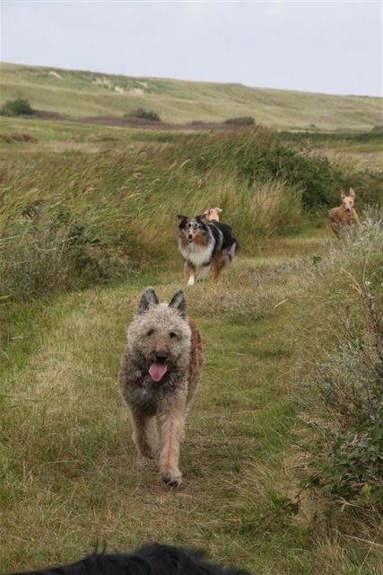 Op zondag staken we over naar Texel, waar Manon en Olaf met hun roedel op vakantie waren.