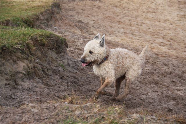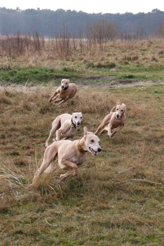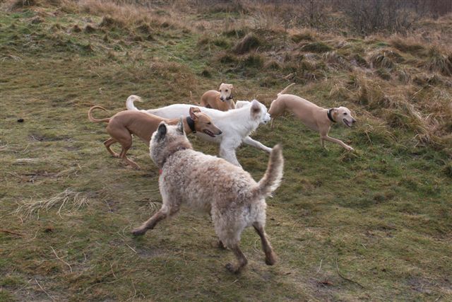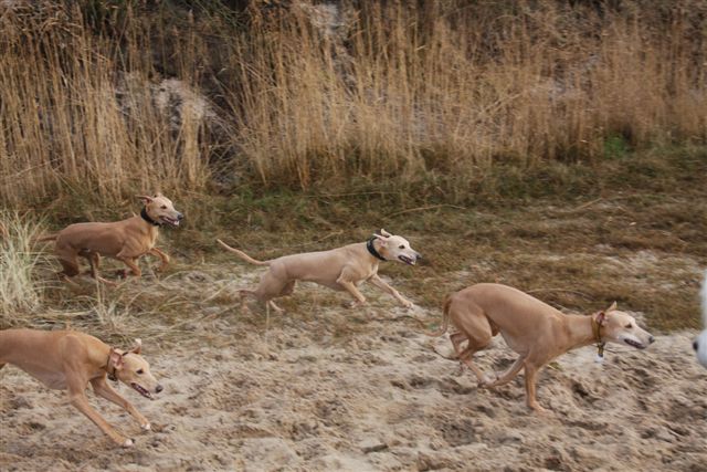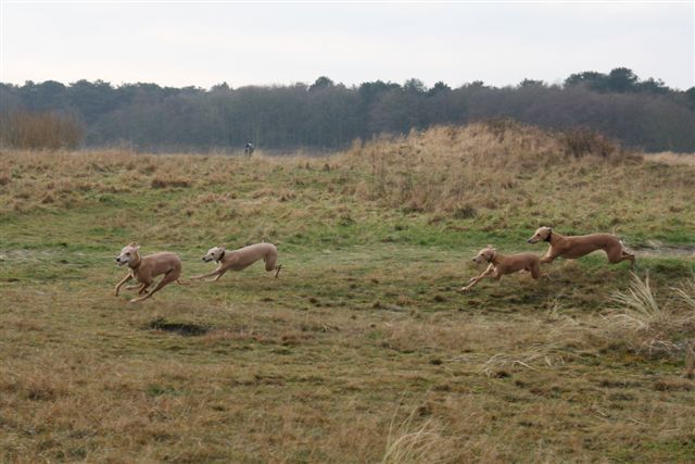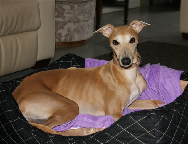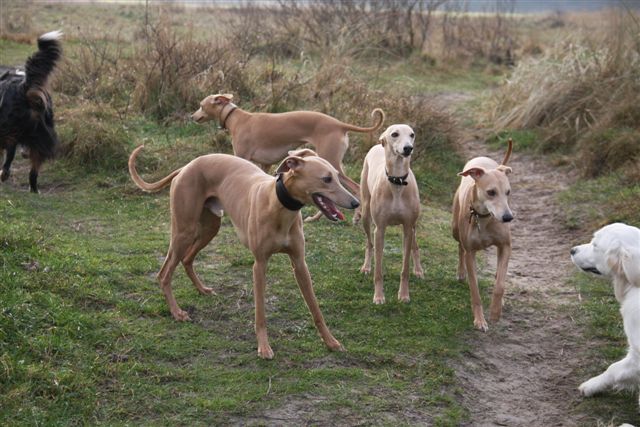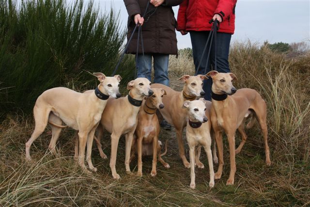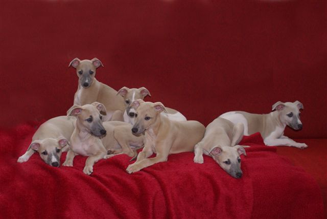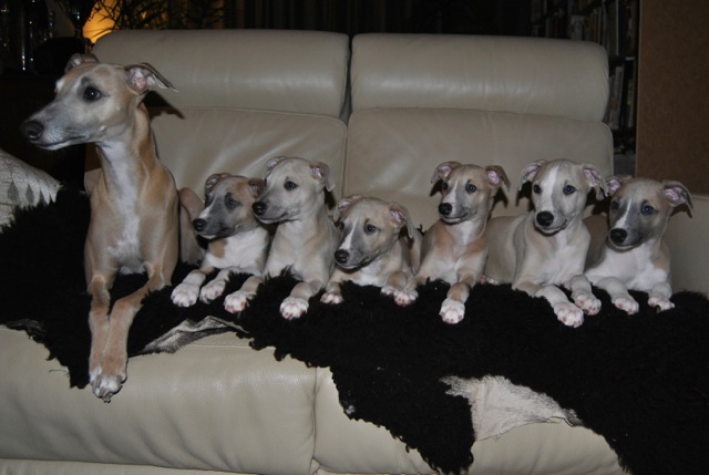 Een foto van 31 oktober 2008, van Dune op de bank bij ons, met haar nestbroer en -zusjes, ook genomen op acht weken. Dune is het pupje dat rechtop zit en met veel verstand de lens in kijkt ;>). Voor haar liggen v.l.n.r. Tiba, Grace, Zoë, Hinde, Fenja en Maestro. Kort daarvoor heette Dune trouwens nog witje, en de rest heette geeltje, groentje, bontje, blauwtje en rose. Alleen Maestro mocht zich vanaf zijn geboorte verheugen over een echte roepnaam, omdat toen al duidelijk was bij wie het enige reutje in het nest zou gaan wonen.