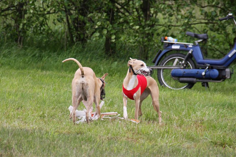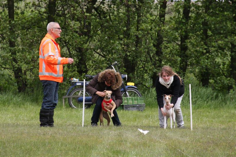 Het was een droge, gezellige en geslaagde trainingsdag, dankzij het bestuur en vrijwilligers van de WRVA; en dankzij de medewerking van Ernst en Sabrina t.b.v. het haasvast van Megan in Ivy. Bedankt allemaal! De volgende training is op 21 juni; als het goed is is Virginie dan ook van de partij, met Dune en Dusty. Want ja, de Sandjes hebben de smaak nu dan toch goed te pakken…… eindelijk, zullen sommigen zeggen ;>)