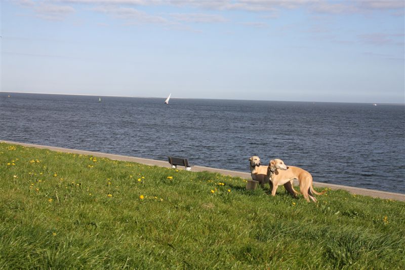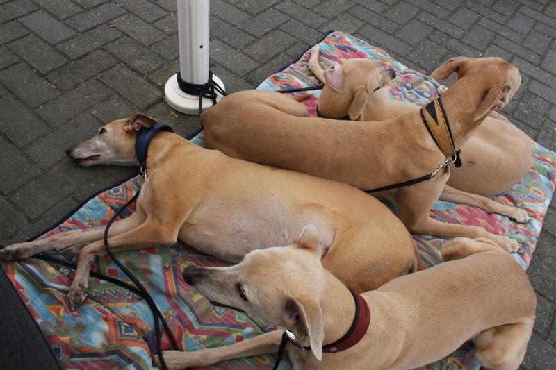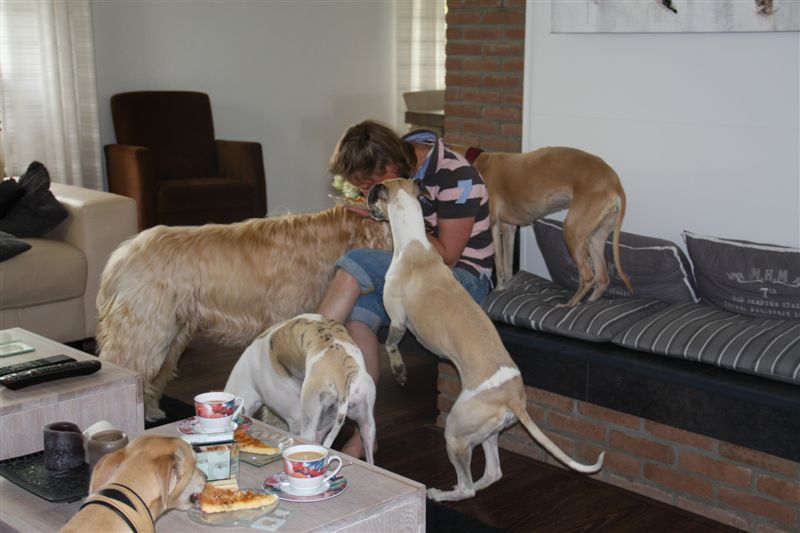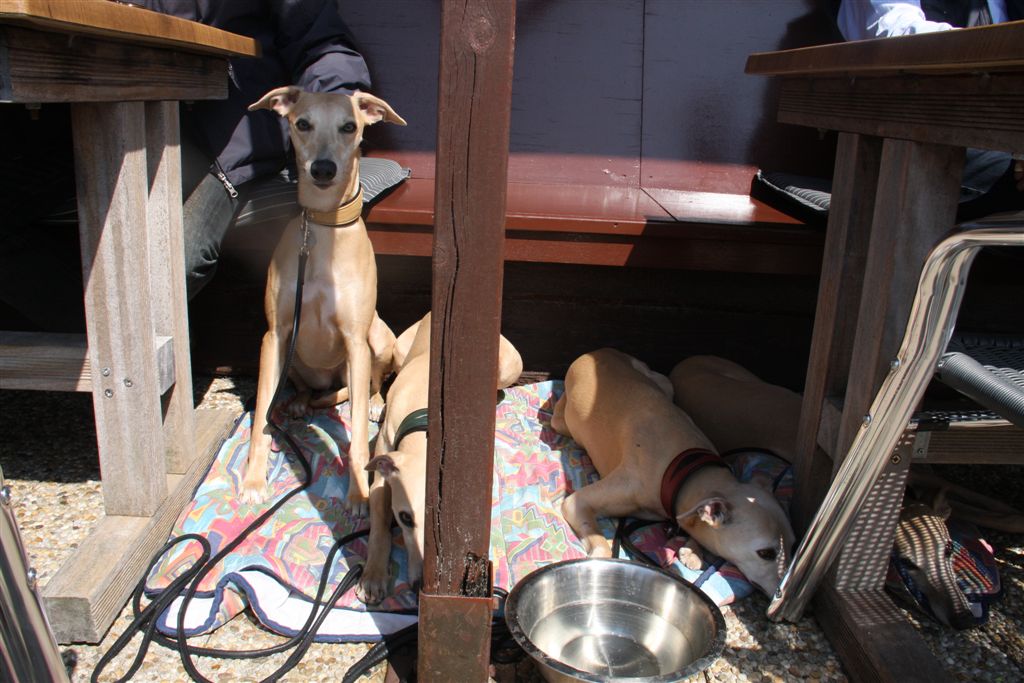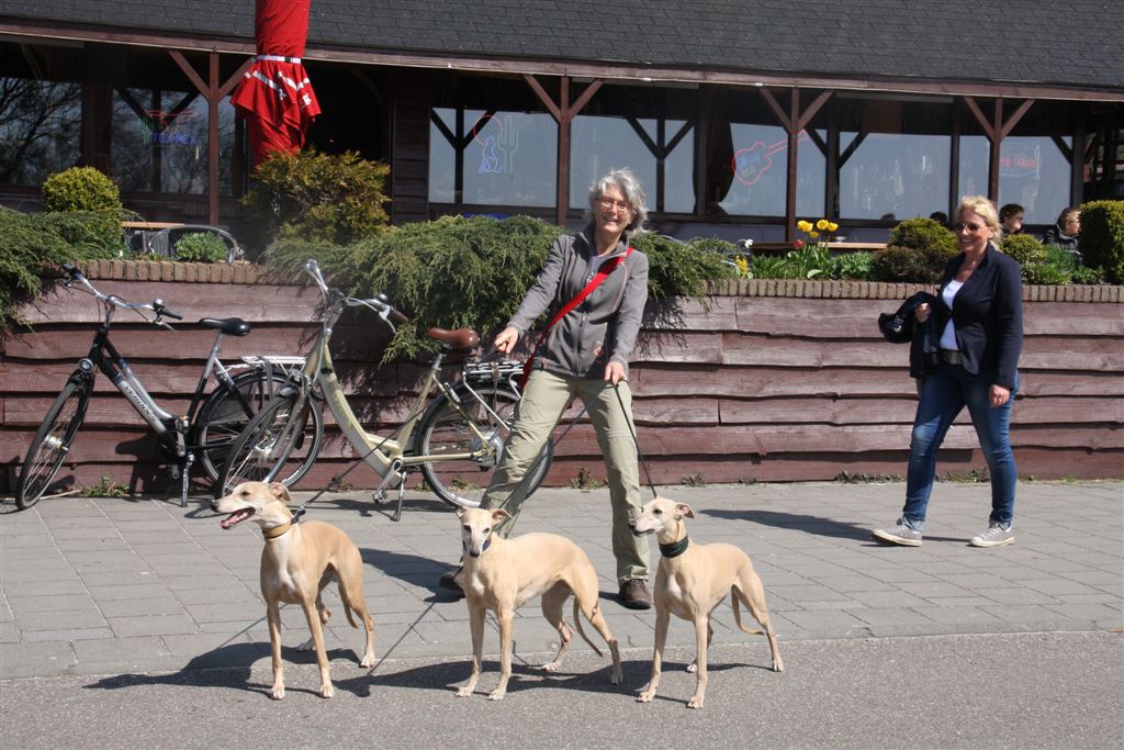 Ze gedroegen zich weer voorbeeldig tijdens de lunch. Whippets zijn meestentijds ideale reisgezellen….