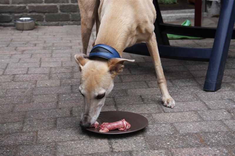 Mediteren maakt hongerig, maar gelukkig had Manon voor ieder wat wils; voor Jewel heerlijke kippen- (of eenden-?)nekken….