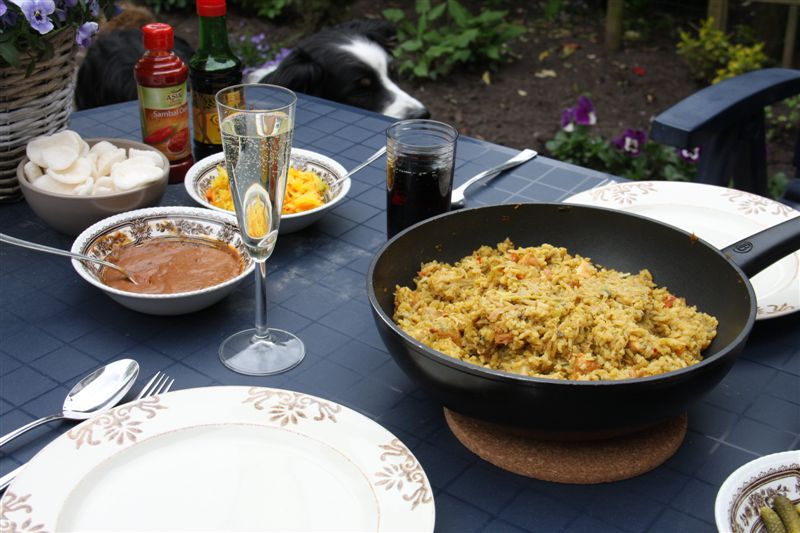 Voor ons heerlijke aangeklede nasi, met een glaasje bubbels;