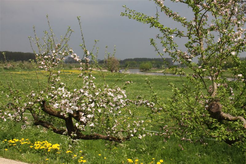 We waren weken geleden al van plan om naar de Betuwe te gaan; gelukkig hebben we goed geluisterd naar Yvonne, die er woont en ons steeds op de hoogte hield van de vorderingen op bloesemgebied. Wij waren er de vorige keer op 10 april, en nu dus vier weken later, zo traag is de lente dit jaar op gang gekomen.