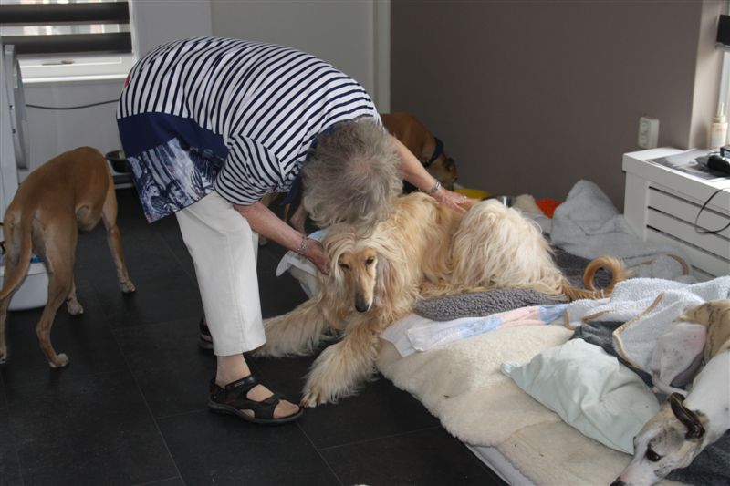 Mijn moeder was erg gecharmeerd van River, de kalme lieve Afghaandame, die zich haar knuffels liet welgevallen.