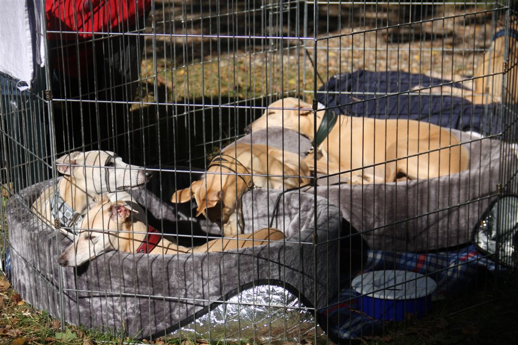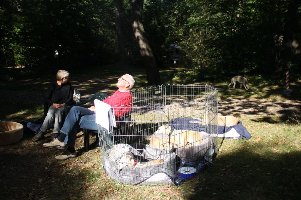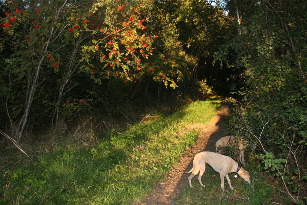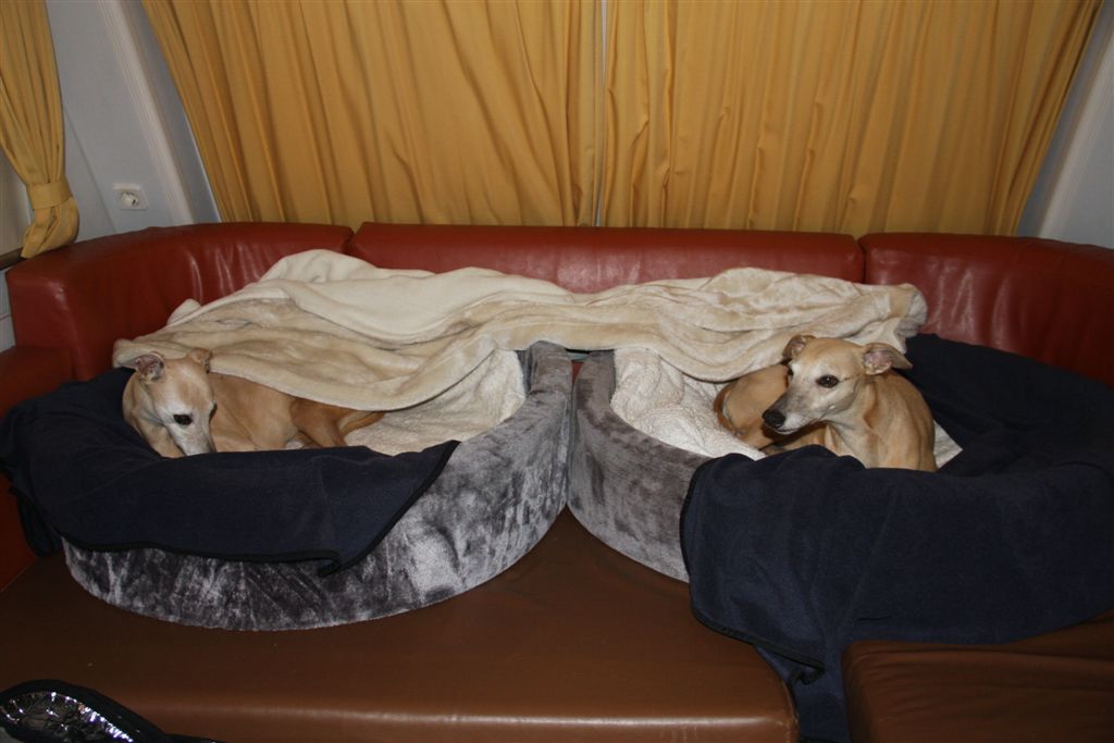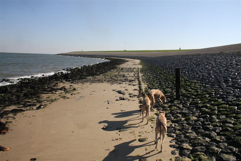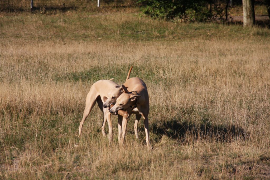 21 sep 2013 001Ik houd echt van de maanden september en oktober; regen en zonneschijn wisselen elkaar in rap tempo af, en de lichtval is warm van kleur. 21 sep 2013 006Mozart en Maestro waren hier te gast, samen met hun personeel. Hans en Elly waren zo lief om vier dagen te komen helpen om het huis van mijn ouders leeg te maken. Er is super hard gewerkt, maar het was tegelijkertijd ook heel gezellig, met lekker eten en mooie wandelingen tussendoor.21 sep 2013 013Jewel’s enige zoon Maestro op zijn gemak in zijn geboortehuis;21 sep 2013 015Mozart idem dito, altijd met een blije lach op zijn gezicht. Hij is Chloe’s enige zoon en is nu 9 1/2 jaar oud. Het is inmiddels vier jaar geleden dat hij verlamd raakte door een stel gebroken rugwervels en daaraan werd geopereerd. Sindsdien heeft hij een beetje eigenaardig loopje, maar geniet met volle teugen van zijn wandelingen en het leven in het algemeen, en een stukje rennen doet hij ook nog steeds.24 september 2013 014In het voorlaatste weekend van september genoten mijn moeder en ik van een dagje in de caravan in Hilversum. De Hoorneboegse heide zag nog prachtig paars. Het plan was om ’s avonds naar huis te rijden, maar toen de buren op de camping hoorden dat we daar eigenlijk nog geen zin in hadden, kwamen ze spontaan aanzetten met schone pyama’s, tandenborstels en tandpasta, helemaal top.  24 september 2013 002De dames beginnen het gebied beter te kennen, en verdwijnen soms even uit beeld. Gelukkig is het gebied netjes omheind, en dat geeft een relatief veilig gevoel.1 oktober 2013 055Het laatste weekend was ik opnieuw in de caravan om wat spulletjes te brengen die we daar goed kunnen gebruiken. Ik moet zeggen, het trekt erg, mijn “tweede huisje” in het bos ;>). 1 oktober 2013 050Elly en Hans kwamen ook een paar zonnestraaltjes pikken en brachten wat lekkers bij de koffie mee;1 oktober 2013 053Uiteraard met Mozart en Maestro.1 oktober 2013 051Er scharrelt heel soms een kat over de camping, dus voor de zekerheid ligt het spul meestentijds achter de tralies…..1 oktober 2013 093Het is ondertussen paddenstoelentijd geworden op de camping en in het bos.1 oktober 2013 076Het gras verliest zijn frisse kleur en vergeelt….1 oktober 2013 072De hei is een beetje minder paars nu; voor het eerst zag ik dat er ook van heide strobalen wordt gemaakt;1 oktober 2013 106Hazel en Hinde spelen met alles wat mee wil doen; hier een nog jonge Rhodesian Ridgeback, die in eerste instantie voor hert werd aangezien ;>)1 oktober 2013 047Maestro kreeg veel aandacht van Nabu, de Galga van mijn buren op de camping. Die twee hebben leuk met elkaar gerend en gespeeld.1 oktober 2013 039Tijdens een wandeling met mijn campingbuurtjes en hun honden, kwamen we nog meer Galgo’s tegen. Het was een zonnige zondag, het was druk op de hei!1 oktober 2013 027Heel veel windhonden op een hoopje;1 oktober 2013 032In de lucht werd iets moois voor ons getekend ;>))1 oktober 2013 099Amber, de Saluki dame van mijn andere campingburen. 1 oktober 2013 098Iedere avond wandelen we met het hele groepje honden nog even vlak voor zonsondergang; er wordt dan druk gespeeld op een open plek in het bos. 1 oktober 2013 091Met name Hinde en Hazel worden zeer actief in zo’n groep honden. Ik moet zeggen dat de camping en het bos en de heide ernaast op zich al fantastisch zijn; maar de aardige en behulpzame hondenmensen van de camping zijn daarbij echt een kers op de taart. Je kunt altijd op ze rekenen, maar iedereen laat elkaar wel met rust.1 oktober 2013 003In de caravan is het qua slapen een beetje behelpen; mijn bed is niet zo groot als thuis, en dus valt er niet fijn te slapen met vier whippets. De oudjes, Chloe en Jewel, zijn gek genoeg het minst kouwelijk van de vier, en dus moesten zij uitwijken naar de rondzit, in een mandje met wat dekentjes.1 oktober 2013 085Na zo’n weekendje in het bos is het ook wel weer lekker om thuis langs de zee te struinen.1 oktober 2013 120Prachtige lichtval op de lijsterbes in Mariëndal;1 oktober 2013 114De dagen worden wel met rap tempo korter. Het laatste plasrondje van de dag vindt allang niet meer plaats in daglicht…..1 oktober 2013 121Na het afronden van de grote klus bij mijn moeder was er weer tijd voor een experimentje met mijn vleesdrogertje; 1 oktober 2013 084Met een spuitzak maakte ik platte porties van een kiloworst Degomeat Kalkoen & vismix.1 oktober 2013 122Met als resultaat een trommel “eerlijke” gedroogde snacks waar de dames hun vingers bij aflikken, zonder granen en zonder schimmeldodende middeltjes. Voor herhaling vatbaar.