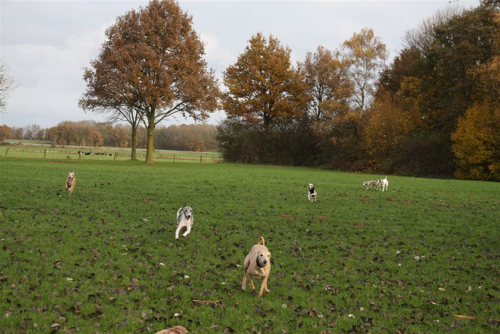 Twaalf whippets en Italiaantje Lotec maakten het recreatiegebied samen onveilig. Nee hoor Katja, geen konijn te vinden hier – maar waarom waren ze toch zo wild ;>))