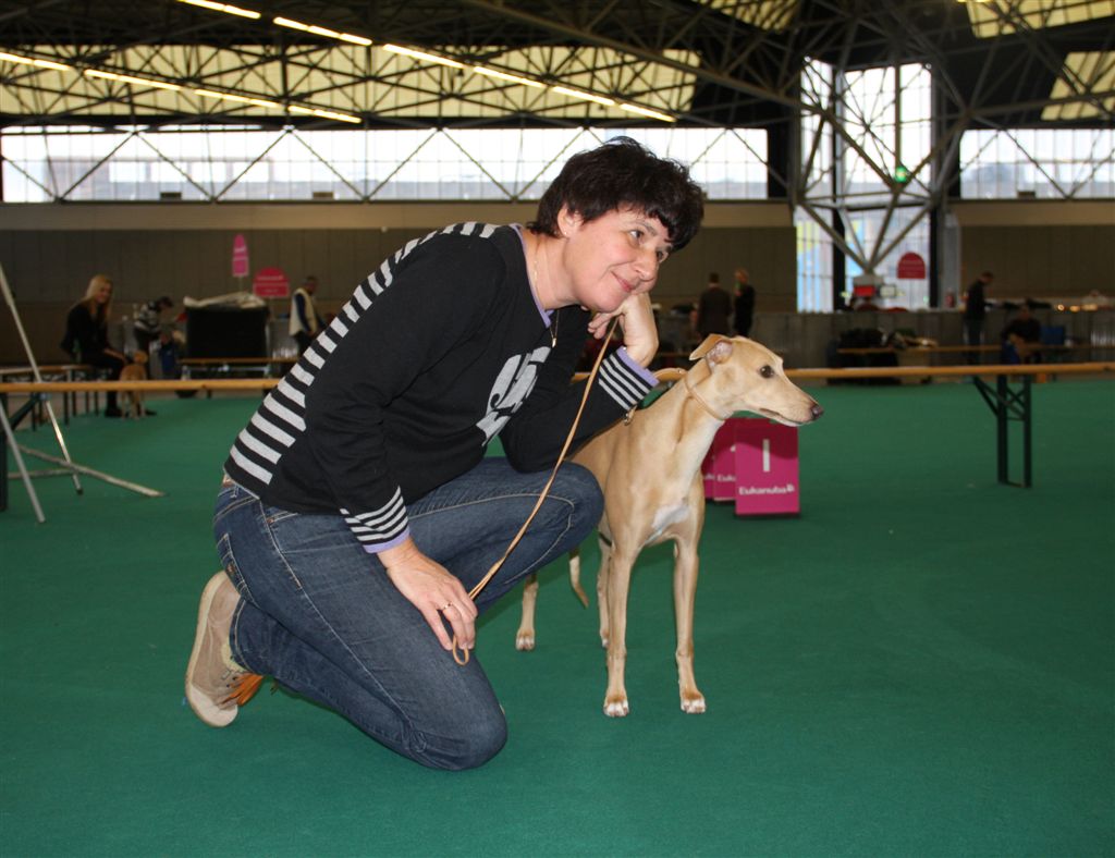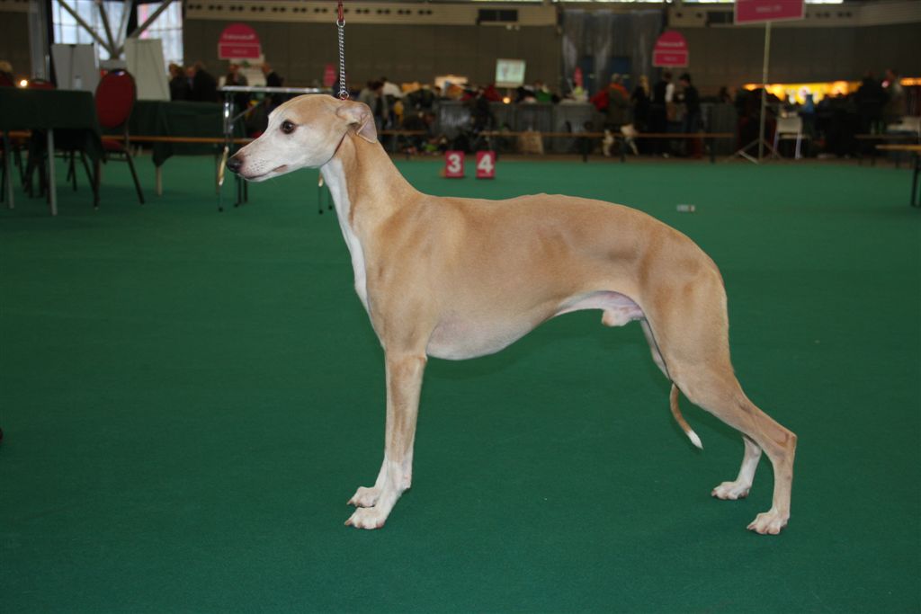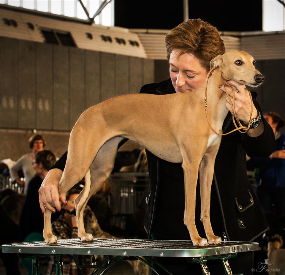Megan was dankzij de goede zorgen van Marianne in topconditie en ze deed het prima in de ring. Deze keurmeester ging duidelijk voor een ander type whippet dan dat van Reef en Megan, dus ik was eigenlijk best blij met haar plaatsing op de 3e plaats in de tussenklas (6 inschrijvingen).