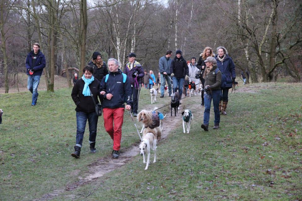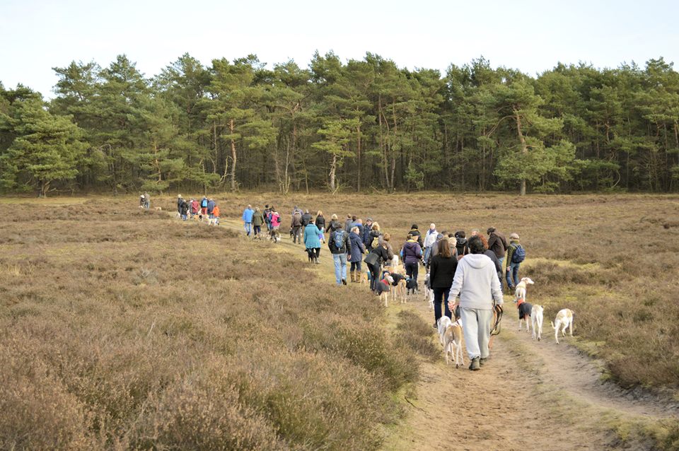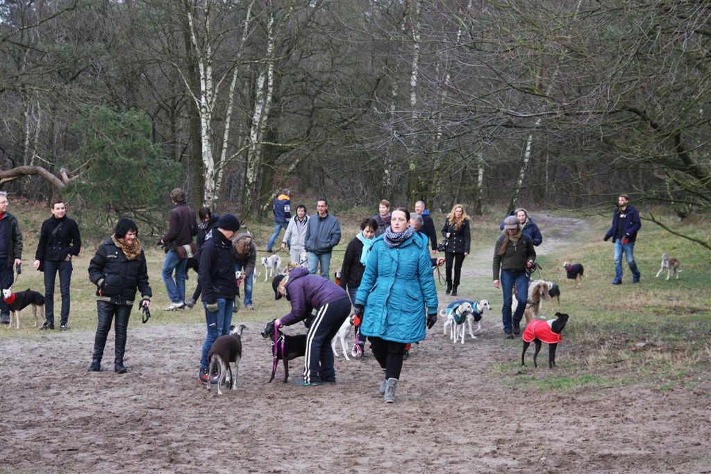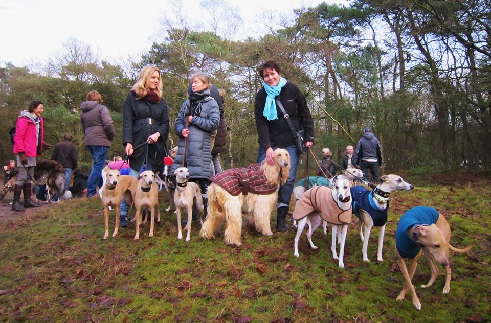 Social media kunnen dingen lelijk en zelfs kapot maken, maar ze kunnen soms ook hele mooie dingen teweeg brengen. Zo liepen we gisteren dankzij mijn oproep op facebook met 56 mensen, 48 whippets en 12 andere leuke (wind)honden een heerlijke nieuwjaarswandeling op de Hoornboegse heide in Hilversum. De onderstaande foto’s zijn niet alleen van mijn hand, maar ook van een aantal medewandelaars.