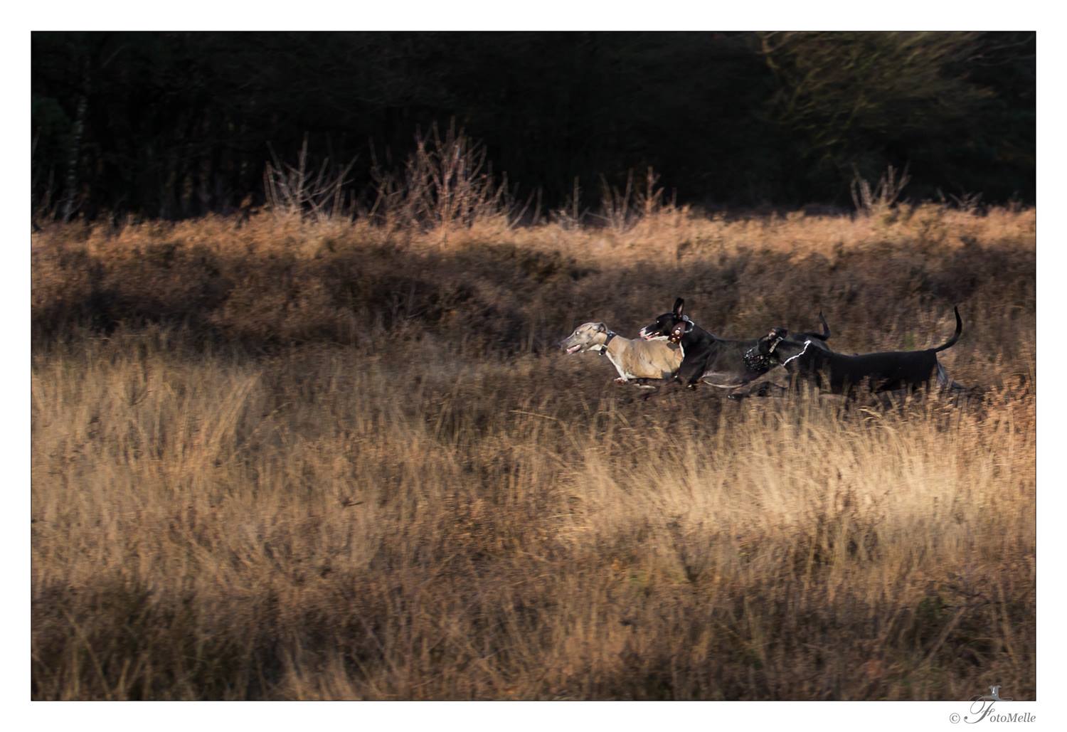 Nog zo’n mooie van Nuelle, van een stel whippets dat door de hei scheurt…..
