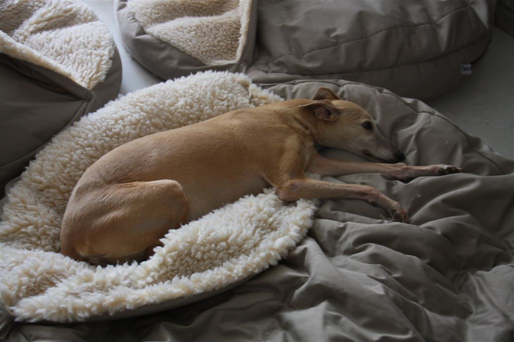 Maar al die mooie successen verbleken bij wat mijn hartendief voor mij is geweest in al die jaren. Een hondje dat mijn benen altijd droog likte wanneer ik uit de douche kwam. Dat met haar etensbakken in het rond liep en de bakken van haar roedelgenoten voor hun neus in haar bek nam en wegdroeg, om elders leeg te likken. Een hondje dat nooit bedelde, omdat ze wist dat alles haar toch wel werd gebracht. Dat een lust voor het oog was wanneer zij zich bewoog door de natuur. Mijn muze, mijn mooiste whippetfoto’s maakte ik van haar. Mijn stille kracht, die haar blessures zo goed kon verbergen. De meest gepassioneerde jager uit mijn roedel, die een gevaar vormde voor mollen, konijnen, hazen en katten…… en die ooit een prachtige kill maakte op de witte vlieger van een argeloos jongetje in de duinen, omdat zij dacht dat het de kunsthaas op een coursing training was ;>).