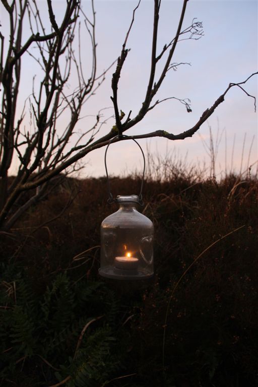 Bij zonsopkomst vanochtend zijn Marianne en ik, met Megan, Chloe, Hinde en Hazel gaan wandelen in de duinen bij het Hengstenpad. Ik hing een waxinelichtje in een struik, en we zagen de zon opkomen en namen in gedachten afscheid, volgens Jewel’s laatste wens.