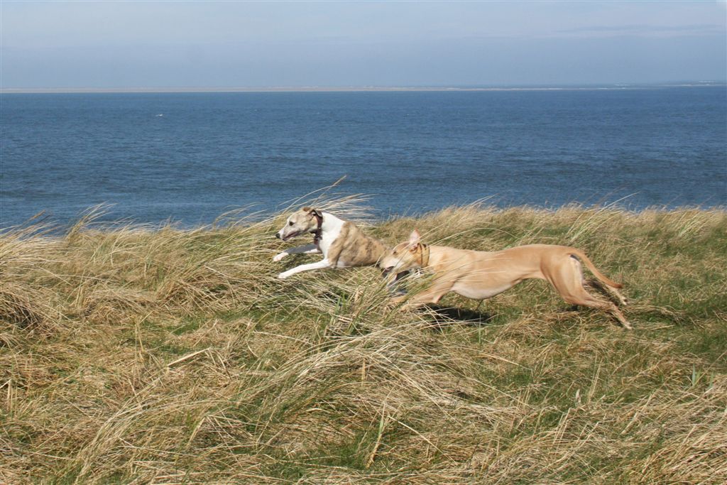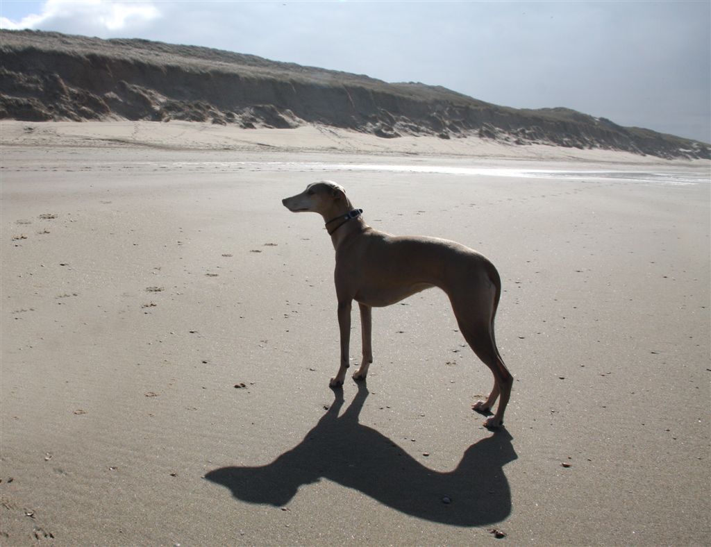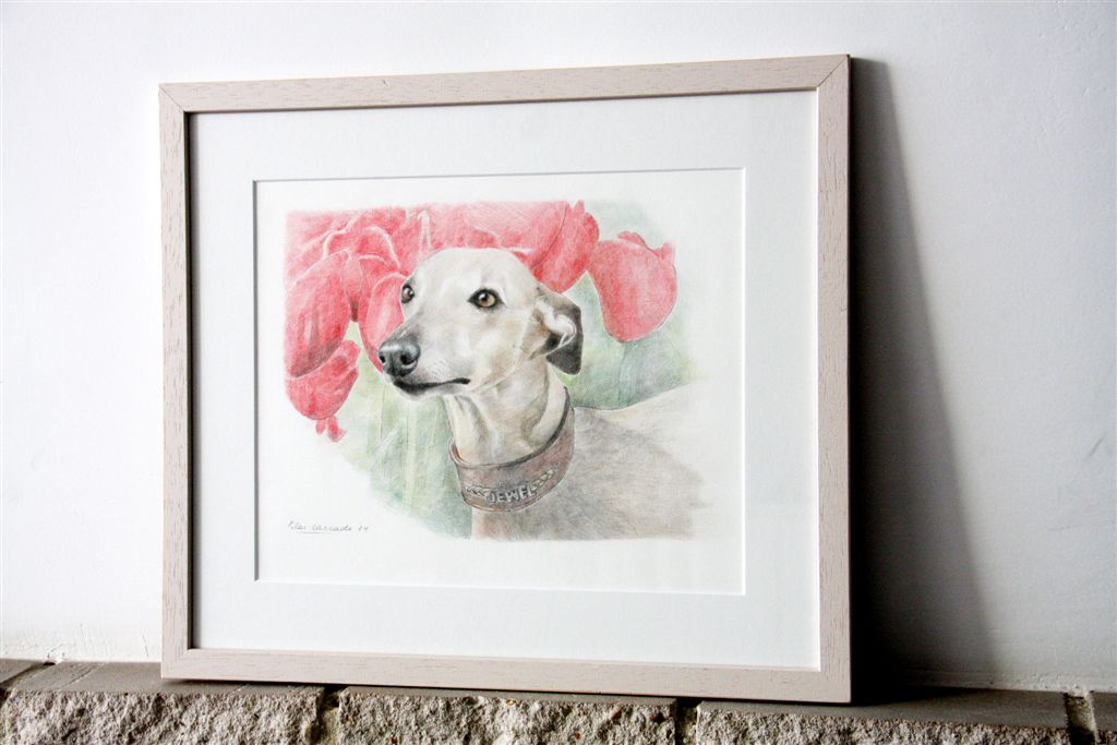 Vorig weekend waren we met een aantal whippet vrienden te gast bij Tinne en Marc in België, om het nest van Dyllis te bewonderen. Daar verraste Evelien (van Jewel’s bonte dochter Zoë – Salty Sand’s Anyone’s Daughter – en natuurlijk van James) mij met een tekening van Jewel, die is gemaakt door Pilar Larcade uit Argentinië.