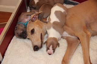 We hebben vrijdagmiddag de nageltjes van de pups voor de tweede keer geknipt, zodat ze Megan niet kunnen beschadigen met hun voorpootjes. Want het gaat er fanatiek aan toe tijdens het drinken ;>).