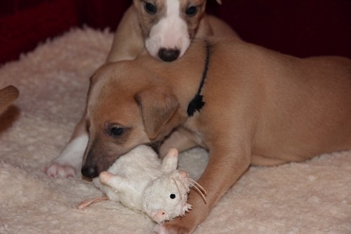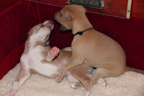 En spelen, dat gebeurt volop tussen de slaapjes door! Lekker bekvechten met elkaar……