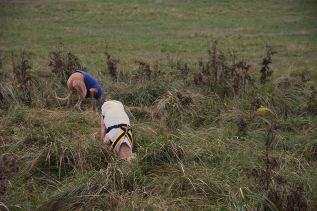 Soms loop ik te kantklossen met twee whippets, en Hazel heeft energie te over, kijk maar: