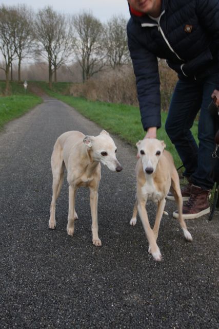 Hinde loopt ondertussen alweer 20-25 minuten achter elkaar. Wel met pauzes om te snuffelen en uit te rusten. We bouwen dit op met iedere week 5 minuten erbij. Ik hoop dat ze mee zal kunnen lopen op de windhondenwandeling in Soestduinen, op 4 januari, dat is mijn streven.